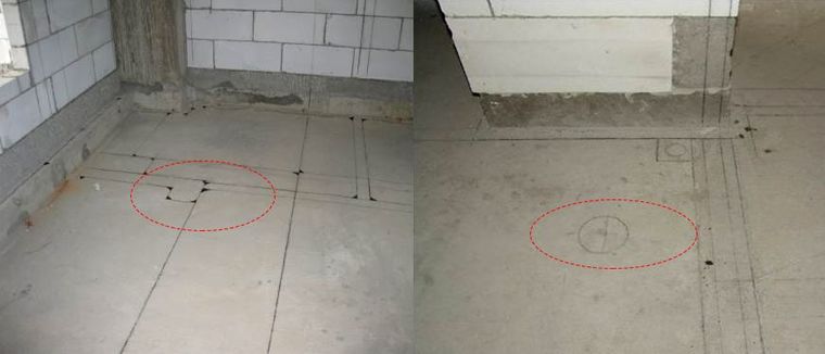 根据施工图和深化排版图进行现场放线,将开关、插座面板、地漏布置在合理部位,避免出现骑缝现象。