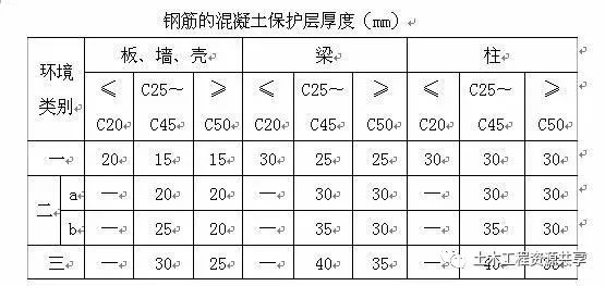 受力钢筋的混凝土保护层厚度,应符合设计要求,当设计无具体要求时,不应小于受力钢筋直径,并应符合下表的规定。