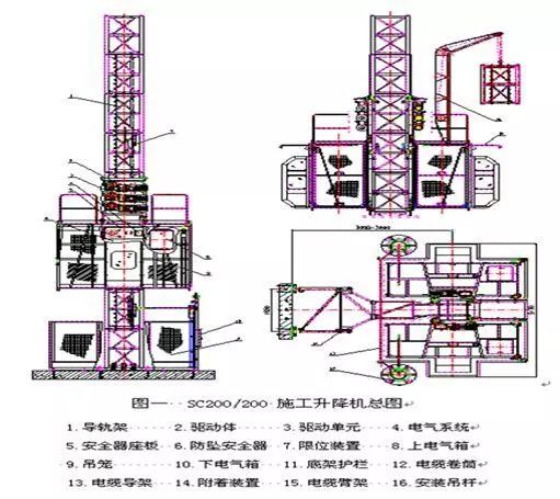 施工升降机是由基础、钢结构、驱动装置、安全装置和电气系统五大部分组成。