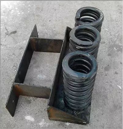 标准做法:每个吊笼对应的底架上有两个或三个圆锥卷弹簧或四个圆柱螺旋弹簧。