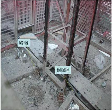 作用:缓冲弹簧装在与基础架连接的弹簧座上,以便当吊笼发生坠落事故时,减轻吊笼的冲击,同时保证吊笼和配重下降着地时成柔性接触,减缓吊笼和配重着地时的冲击。