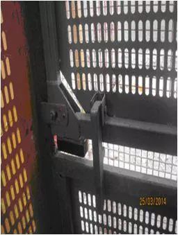 标准做法:正常情况下,施工升降机围栏门要设置有机械锁钩、电气联锁限位开关。