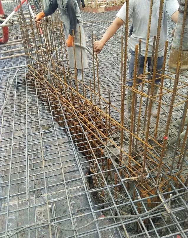 2、安排木工守模,在浇筑混凝土时,有时可能因为没有加固到位而出现爆模,就需要木工马上加固,同时指挥泵车暂时不要浇筑那个部位,泥工暂时不要用震动棒去振捣。随后安排木工把爆出来的混凝土清理干净重新利用。另一个方面,楼板上在浇筑混凝土时,作业人员比较多,难免会把负筋踩踏,这时就要钢筋工重新绑扎牢靠。