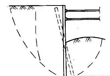基坑开挖后,土体沿围护墙体下形成的圆弧滑面或软弱夹层发生整体滑动失稳的破坏。