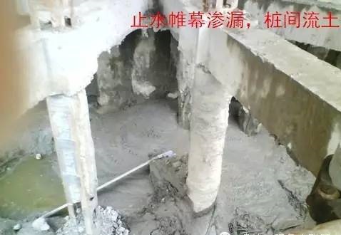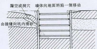 在饱和含水地层(特别是有砂层、粉砂层或者其他透水性较好的地层),由于围护墙的止水效果不好或止水结构失效,致使大量的水夹带砂粒涌入基坑,严重的水土流失会造成地面塌陷。