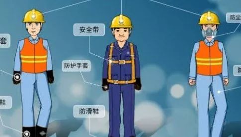进入施工现场前必须根据所在岗位穿戴合适的防护服,常见的防护服有普通工作服和特殊防护服,普通防护服主要用于非高温、重体力等工种。