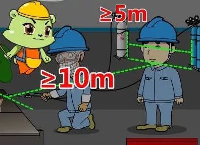 4、氧气瓶和乙炔瓶工作距离不少于5米,与明火作业距离不少于10米。