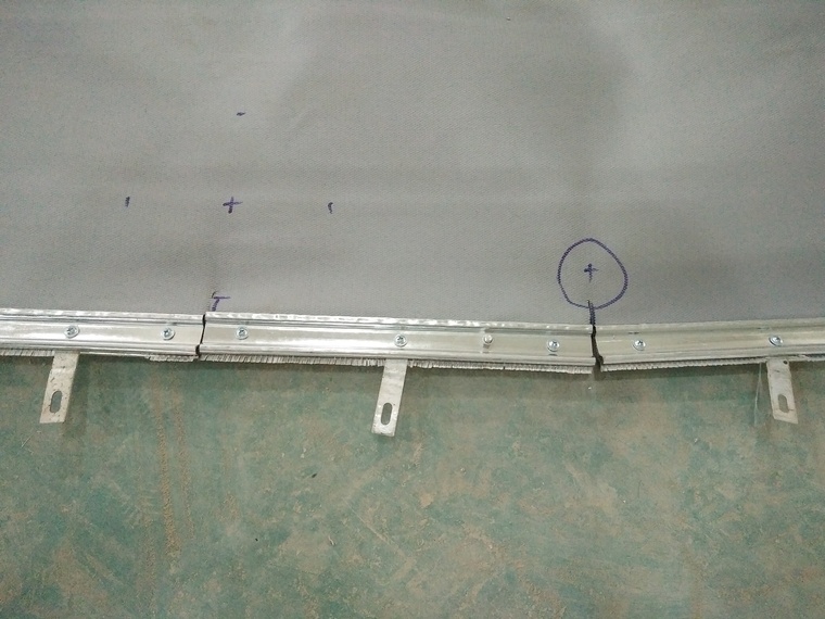 2. 2将挡烟部件移至需安装位置,按照固定件上孔的位置在挡烟部件压条上打孔 ,然后用螺栓将挡烟部件固定在固定件上。