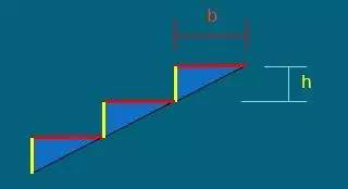 (3)根据房屋类型,确定踏部的高(h)和踏步宽(b),即确定楼梯的坡度。