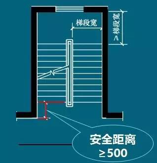 开敞式楼梯间楼层平台应有一个缓冲空间,其宽度不得小于500mm。