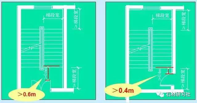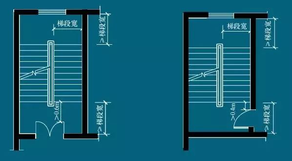 封闭式楼梯间楼层平台一般与中间休息平台等宽,但是必须满足规范规定的局部尺寸的要求。
