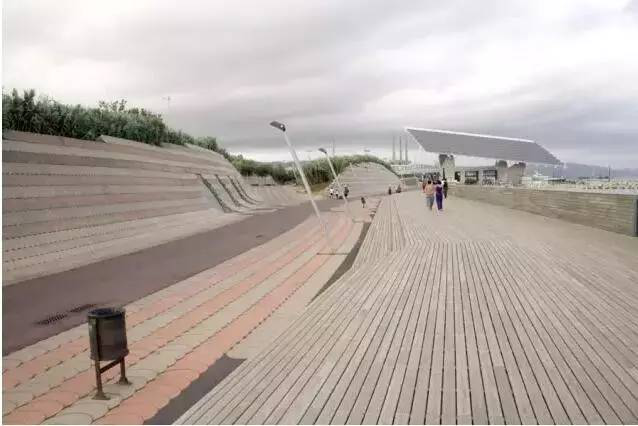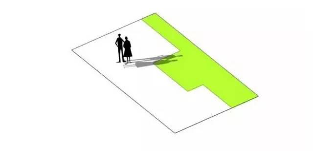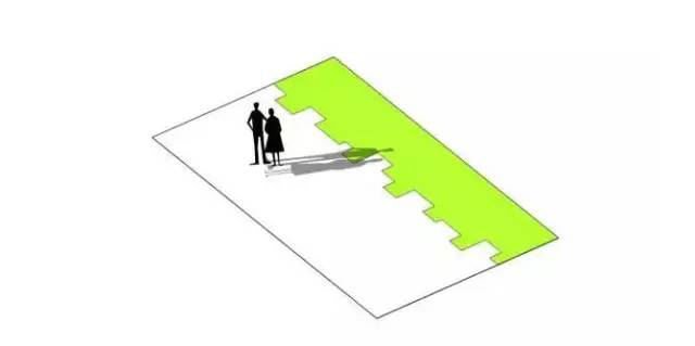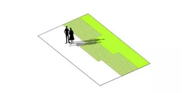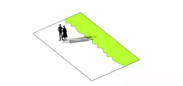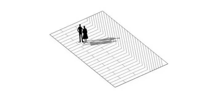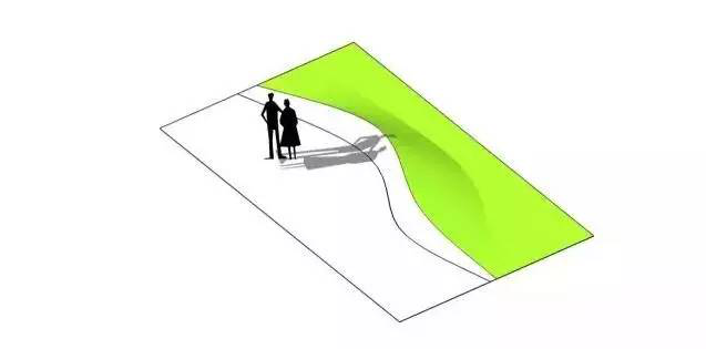 如果说强烈的边界是建立于一条划分明显的界线,那么像弱化它的最彻底方法就是把这条边界擦除。而实际上只要存在两种材料或元素,就必然产生边界。所以想做到最大化的弱化边界就需要模糊两个元素的独立性,比如地面逐渐变化为立面,使用者会判断这是铺装还是墙面或座凳的问题,从而使人的注意力转移到水平面与垂直面的模糊性上而不再关注边界本身。