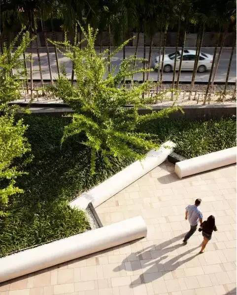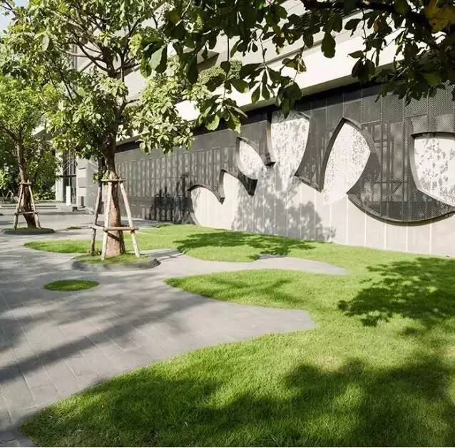 但是很多人并不喜欢这种太过刚硬的边界处理方式,他们认为场地应该是一个整体,而不是被边界切割成很多块,所以,设计师越来越注重刚性、柔性结合处理的方式,这样也使得景观空间富于变化和创意。