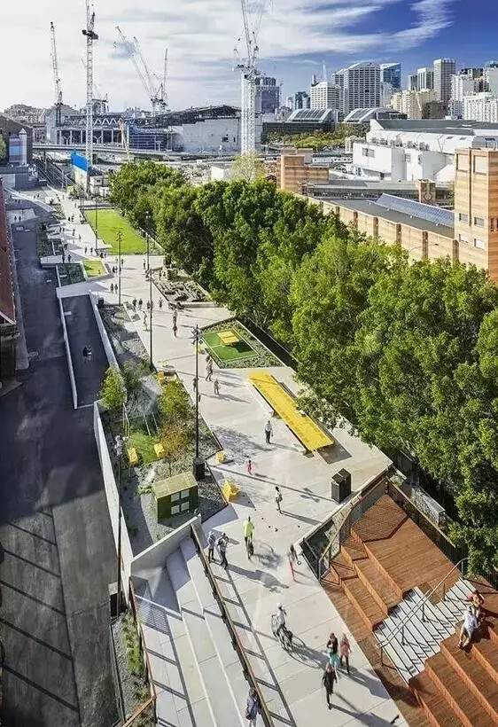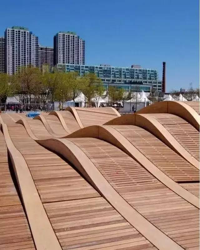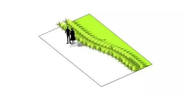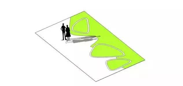 对于过长的边界,就需要打破其原有的平淡。可以划分成几段线段,这样还能产生凹空间,用来放置休息设施或创意装置。线段之间的角度可以灵活改变。