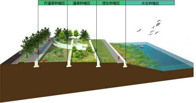 d.乔灌草植物种植区:基本处于防洪标准水位线以上,可按常规种植方式种植。