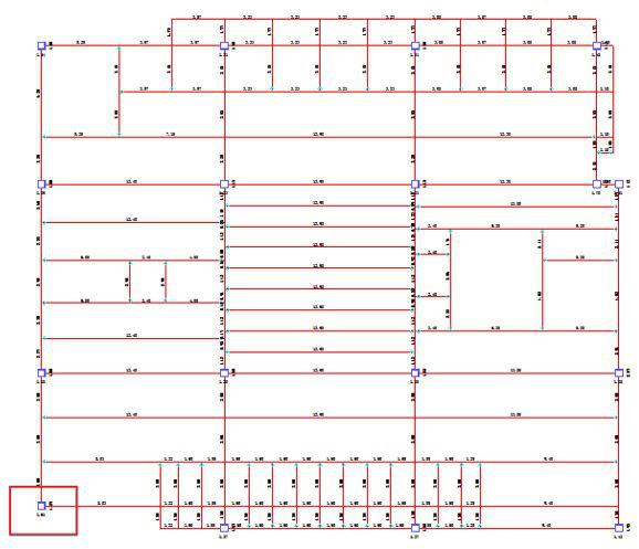 答:有疑问的柱y向计算长度系数较大,在计算y向计算长度系数时,其梁柱连接关系如下图(七杆模型):