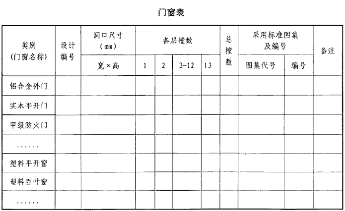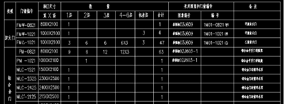 还要注意人防门窗单独列表或者是以一个模块单独列在表格下部,这里表中的每一个类型都是一个单独需要表示的部分。