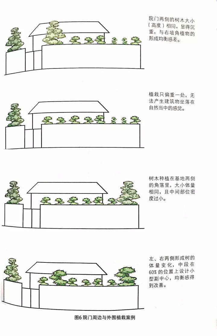 ⊙外围植栽的均衡感:在住宅前院里至少存在两处视点,来自玄关的和来自道路的。