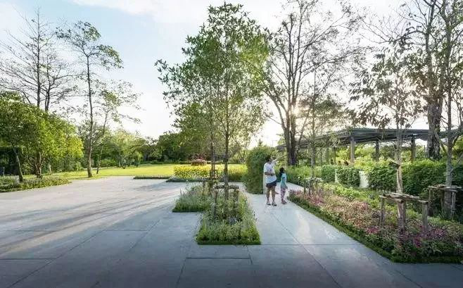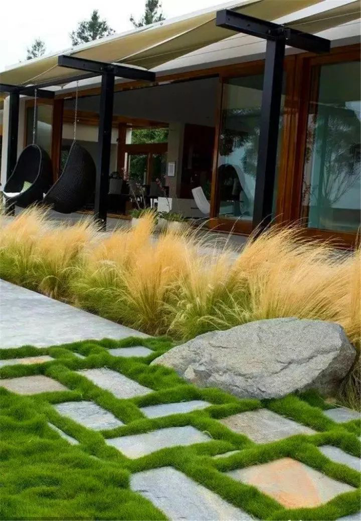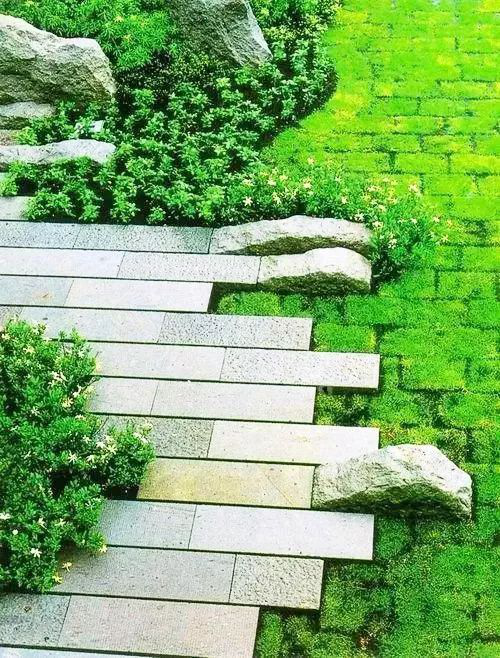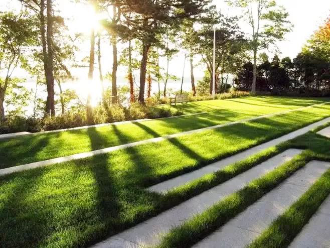 草地及嵌草铺装与其他硬质材料相比,更具亲切性,也更为柔和、自然。