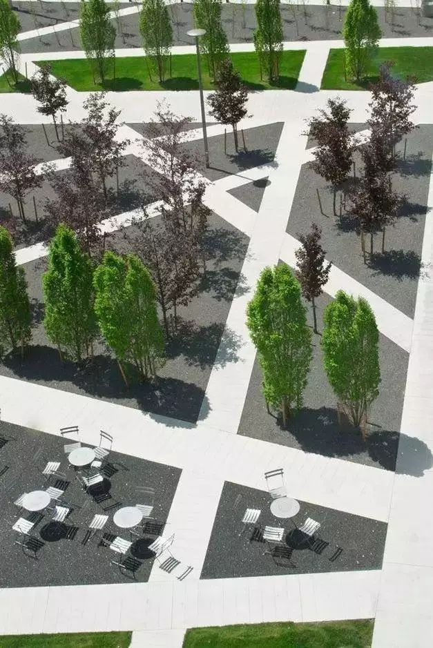 石材,是比较常见的一种铺装材料。其应用范围很广,设计师通常会将这种铺装应用在较为规整的空间里,可以突出景观庄严、稳定、大气的氛围。