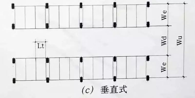 垂直停车可以从两个方向进、出车,停放较方便,在几个停车方式中所占面积最小,但转弯半径要求较大,行车通道较宽。