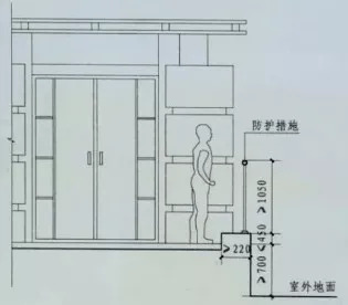 公共出入口台阶高度超过0.7m并侧面临空时,应设置防护设施,净高不应低于1.05m。
