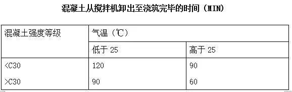混凝土从搅拌机卸出至浇筑完毕的时间(MIN)