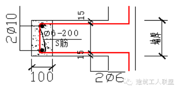 b、构造柱的要求:构造柱厚度同墙厚,宽度200mm,柱内竖筋412,箍筋6@200,接头范围箍筋加密100mm,加密高度600mm。基础墙体构造柱箍筋间距为100mm。