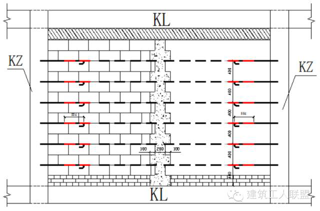 (1)拉结筋设置要求:拉结筋设置在灰缝内,0.000以下拉结筋位置沿墙高每隔500mm设置一道,通长设置。0.000以上拉结筋位置沿墙高每隔400mm设置一道,通长设置。拉结筋与拉结筋搭接长度为55d。