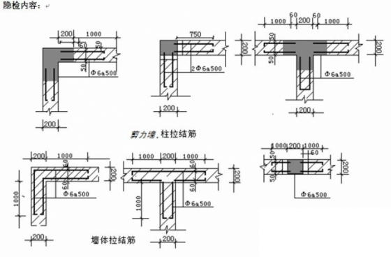 (1)拉结筋设置要求:拉结筋设置在灰缝内,0.000以下拉结筋位置沿墙高每隔500mm设置一道,通长设置。0.000以上拉结筋位置沿墙高每隔400mm设置一道,通长设置。拉结筋与拉结筋搭接长度为55d。