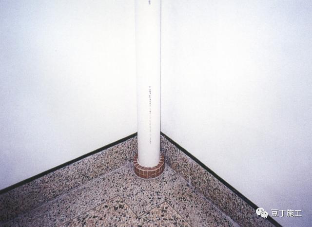 (3)穿越楼地面的立管除采暖管应加套管外,其余管道在管根应做找坡圆台,圆台高出管根处地面25~30mm,找坡宽度30~50mm。
