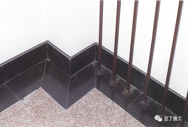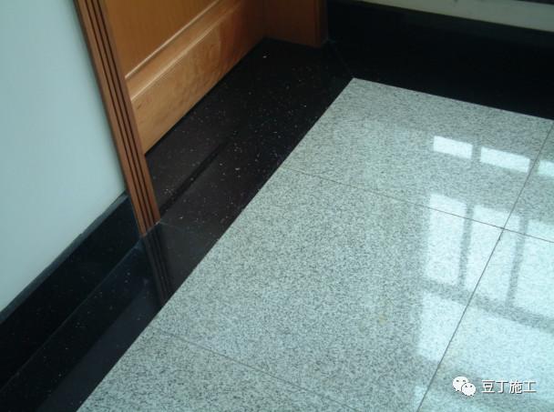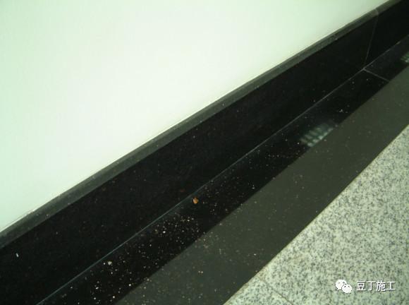 图7.1.3-4石材踢脚板出墙厚度一致,在转角处倒角,并且和地面理石对缝