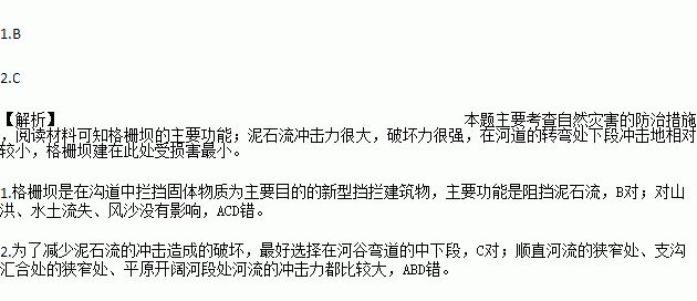 格栅坝,又名格栏坝,是指具有横向或竖向格栏网格,在沟道中拦挡固体物质为主要目的的新型挡拦建筑物,其建筑材料多为石头、金属及混凝土等,坝的形状也多种多样,如缝隙坝、梳齿坝、耙式坝、筛子坝和网格坝和桩林等。据此回答下列问题。