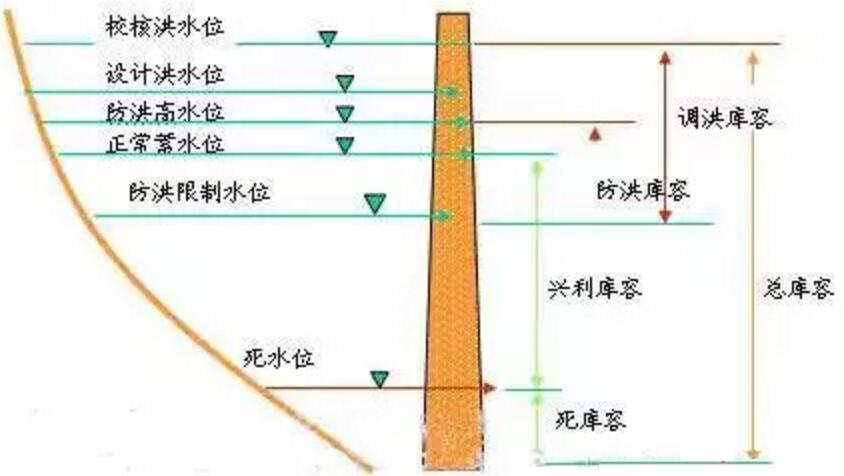 水库为完成不同任务,在不同时期和各种水文情况下需控制达到或允许消落的各种库水位称为水库特征水位。相应于水库特征水位以下或两特征水位之间的水库容积称为水库特征库容。