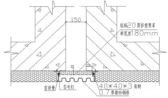 工艺流程:缝口处理填入填充料抹底层灰粘贴防水卷材外保温施工安装定型成品挡水板打密封胶外饰面层施工。