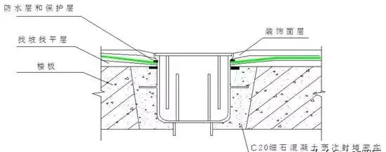 2、下沉式卫生间设侧排地漏,便于排回填陶粒内的集水;