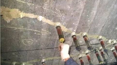 ① 由于混凝土搅拌运输时间过长,浇筑速度过快,振捣不实、施工缝做法不当、模板走动等原因形成裂缝,可以采用一般混凝土裂缝补强措施或者充填混凝土材料、钢锚栓加固、甚至粘钢板加固、预应力加固等办法补救。