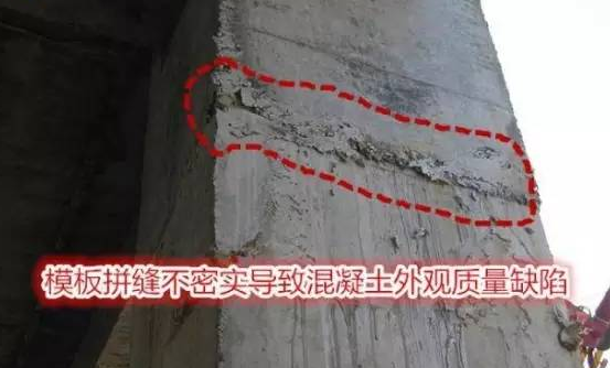 1 模板拼缝问题引起的混凝土质量缺陷现象及原因: