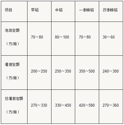 多年来进行灌水的实践经验是制定灌溉制度的重要依据。灌溉制度调查应根据设计要求的干旱年份,调查这些年份的不同生育期的作物田间耗水强度(毫米/天)及灌水次数、灌水时间间隔、灌水定额及灌溉定额。根据调查资料,可以分析确定这些年份的灌溉制度。一些实际调查的水稻的灌溉制度举例如表。