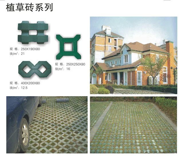 植草砖将植草区域变为可承重表面,适用于停车场、人行道、出入通道、消防通道、高尔夫球道、屋顶花园和斜坡、固坡护堤,尤其适合设在各类居住小区、办公楼、开发区的停车场和车辆出入通道,也可在运动场周围、露营场所和草坪上建造临时停车场。