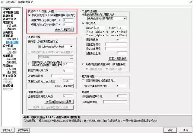 ③外地震剪力偏小而层间侧移角又恰事先,可在SATWE的调整信息2中的全楼地震作用缩小系数中输入大于1的系数增大地震作用,以满足剪重比要求。