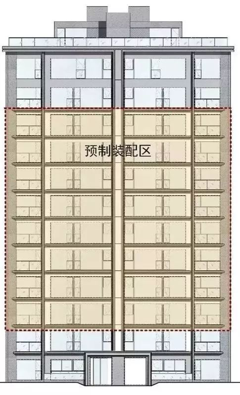 (3)预制构件立面分布图,应表达一整栋建筑立面上的预制构件与现浇混凝土的范围以及预制构件的名称