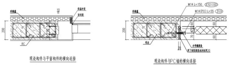 (5)预制构件公共详图包括水平和竖向缝连接详图,夹心保温排水管设置详图,预制剪力墙水平和竖向连接详图,预制梯段板端部连接详图,夹心保温内外页板连接详图,预制墙施工用斜撑详图,预制外墙调标高详图、PC与现浇阴角模板施工详图,双向叠合板整体式接缝构造图等
