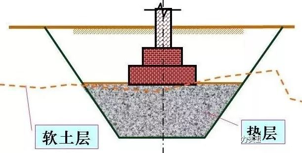 地基中的剪切破坏是从基础底面开始的,并随着基底压力的增大而逐渐向纵深发展。因此,若以强度较大的砂或其它填筑材料代替软弱土层,就可提高持力层承载力,从而避免地基破坏。