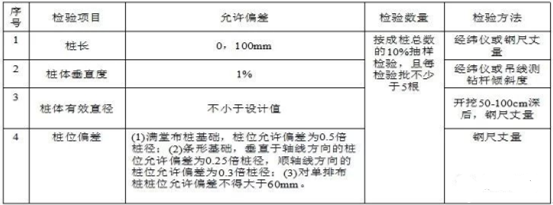 CFG短桩复合地基技术施工质量严格执行《建筑地基基础工程施工质量验收规范》(GB50202-2002),同时按照CFG短桩的施工特点,我们对短桩质量验收时的允许偏差等方面进行了统一的规定。如表:CFG(或素混凝土)短桩允许偏差、检验数量及检验方法