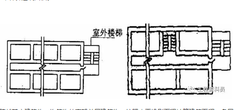 19.建筑物内无楼梯,设室外楼梯(包括疏散梯)的,其室外楼梯按每层水平投影面积计算建筑面积; 室内有楼梯并设室外楼梯(包括疏散梯)的,其室外楼梯按每层水平投影面积的一半计算建筑面积。