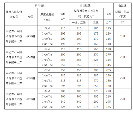 3.对接焊缝抗弯受压区强度设计值取fcw,抗弯受拉区强度设计值取ftw。