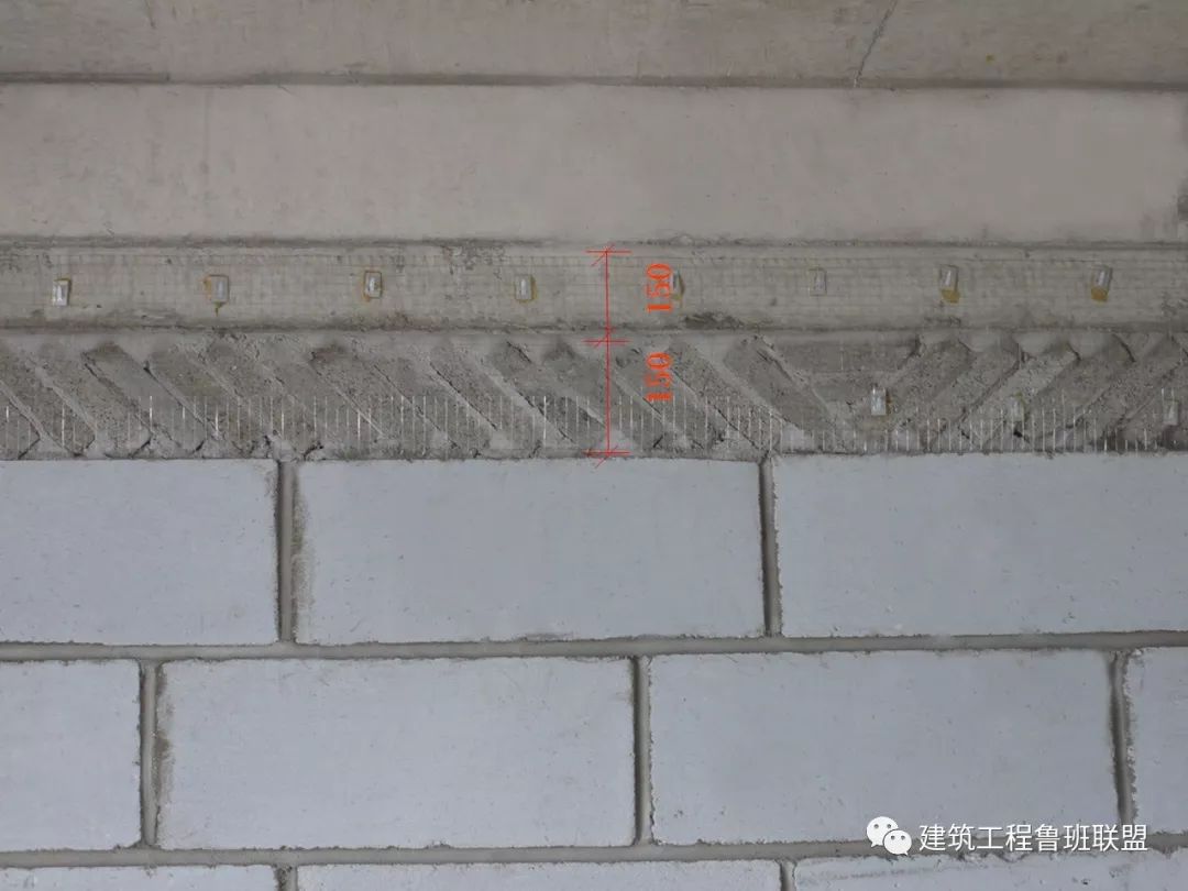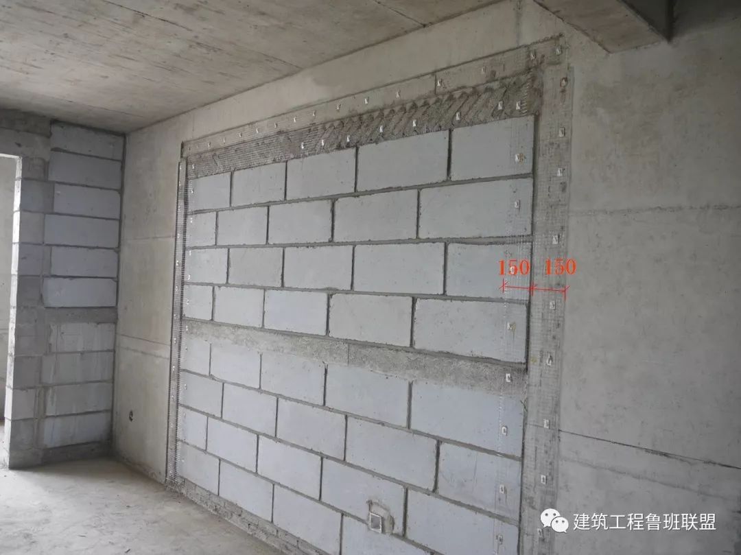 对于20cm厚填充墙体采用17cm宽加气块居中砌筑,砌体两侧各留置15mm作为粉刷层用。在砌筑时,与主体结构砼交接部位的砂浆灰缝用圆钢预抽凹槽,宽15mm深15mm。