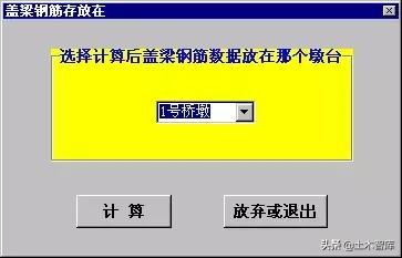 一但设计数据确定,用户即可点击生成钢筋绘图数据,此时弹出对话框,提示用户经过计算后自动生成的钢筋数据要存放在哪个墩台编号位置上,用户必须用鼠标点击墩台编号。比如,现在设计的是1号桥墩,如果该工程的1号桥墩首次设计,就选择1号桥墩作为存放钢筋数据;如果该工程的1号桥墩的钢筋图已经设计好,这时,千万不要选择该工程的1号桥墩。否则,1号桥墩的原钢筋数据将被设计生成的钢筋数据覆盖。这种情况下,最好选择较大的那个墩台编号(比如99号桥墩)存放经过计算后自动生成的钢筋数据。如果1号桥墩需要该数据时,使用插入功能即可完成将99号桥墩的钢筋数据插入到1号桥墩中。