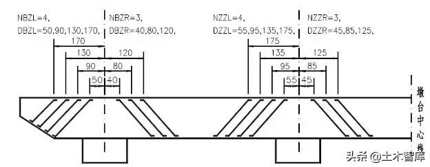 ⑵根据斜交角、弯起钢筋种类、箍筋环数、盖梁等高或悬臂段变高计算钢筋编号。